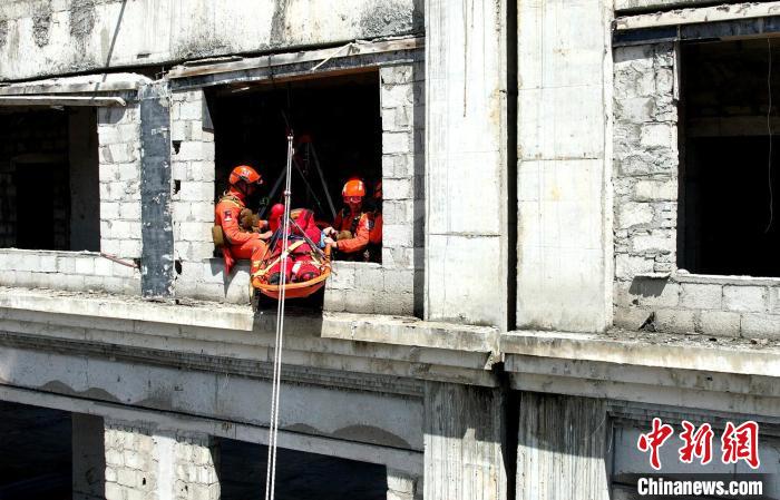 圖為演練中指戰(zhàn)員利用斜向救運(yùn)送傷員。西繞拉翁 攝