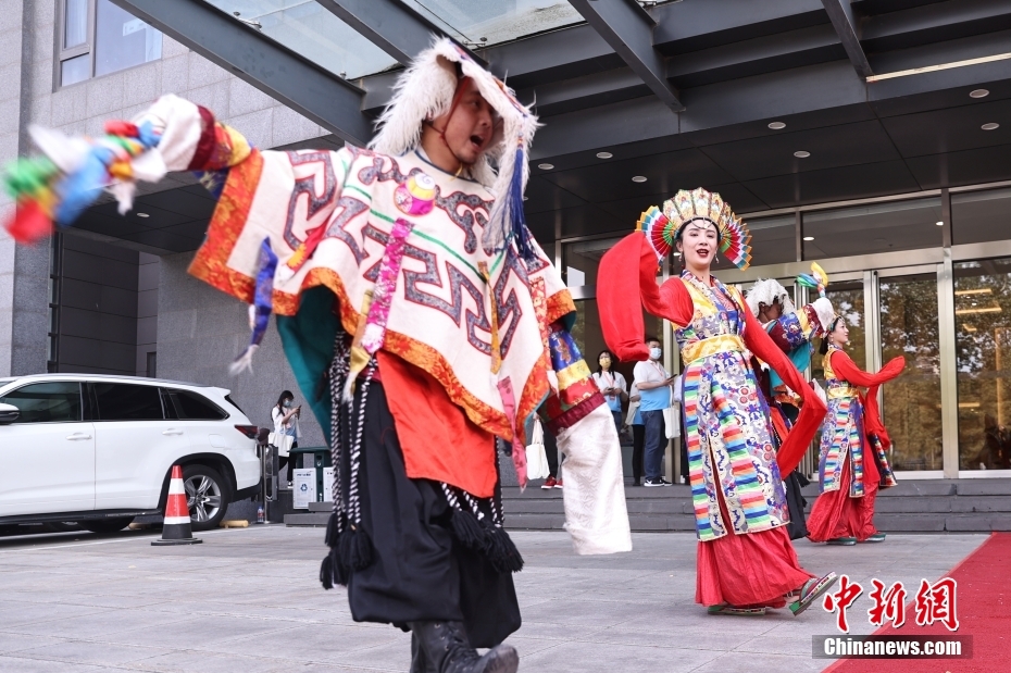 5月23日,“2023·中國(guó)西藏發(fā)展論壇”在北京舉行。會(huì)場(chǎng)外,活潑獨(dú)特的藏式迎賓舞蹈、展示西藏人文自然風(fēng)貌的圖片,已在論壇開(kāi)幕前預(yù)熱起探討西藏新發(fā)展的氛圍。圖為藏式迎賓。