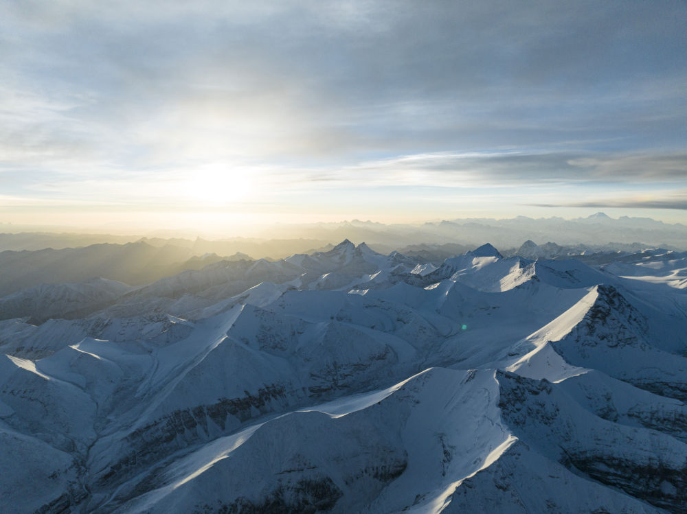 這是在海拔8000米左右高空拍攝的喜馬拉雅山脈群山(5月23日攝,無人機照片)。新華社記者 洛卓嘉措 攝