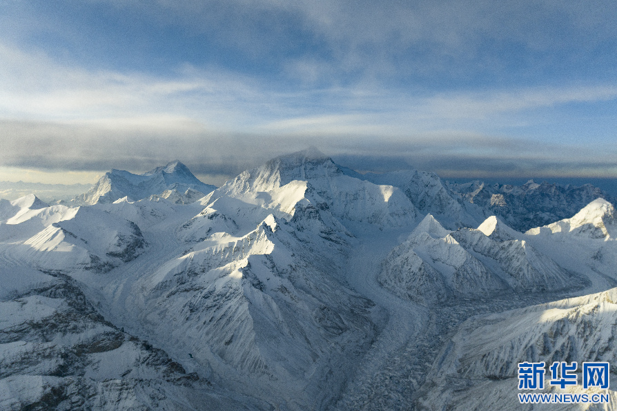 在海拔6200米左右拍攝的珠穆朗瑪峰(無人機(jī)照片)。 新華網(wǎng) 旦增努布 攝