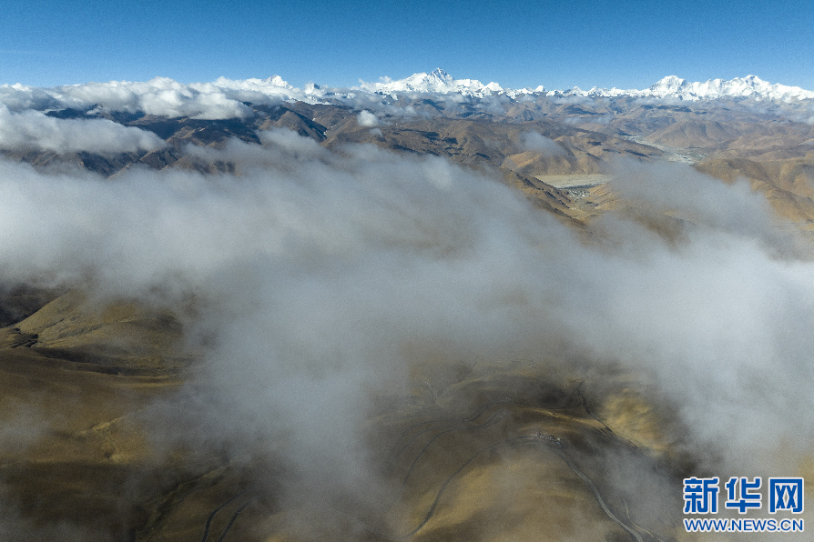 在海拔6000米左右拍攝的喜馬拉雅山脈(無人機(jī)照片)。 新華網(wǎng) 旦增努布 攝