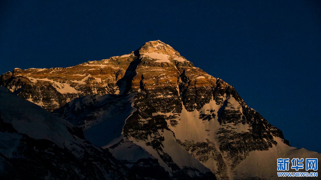 日落時分拍攝的珠穆朗瑪峰。新華網(wǎng) 旦增努布 攝