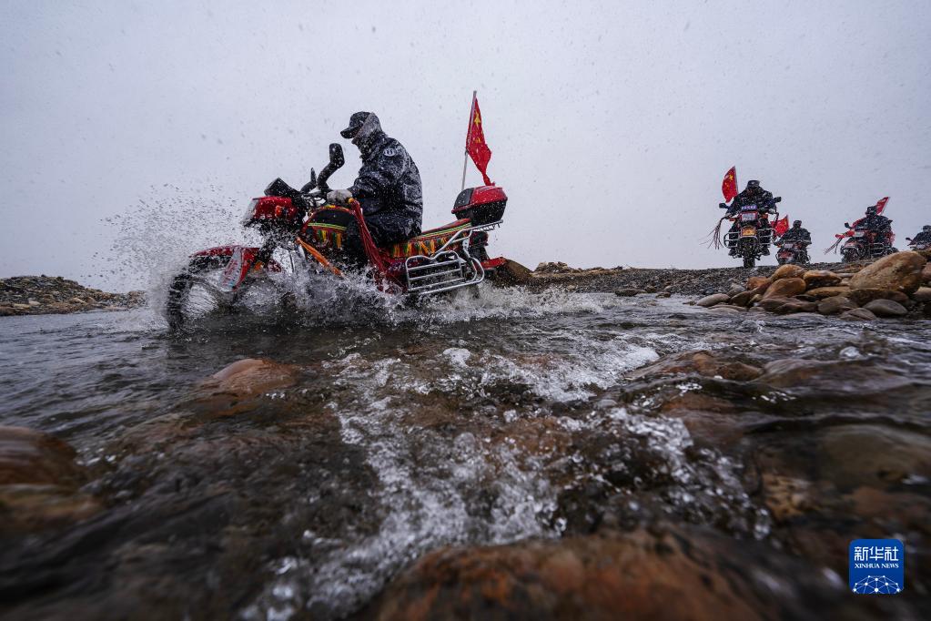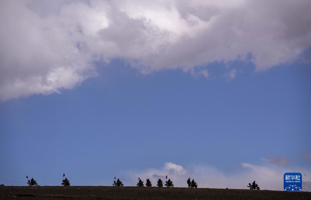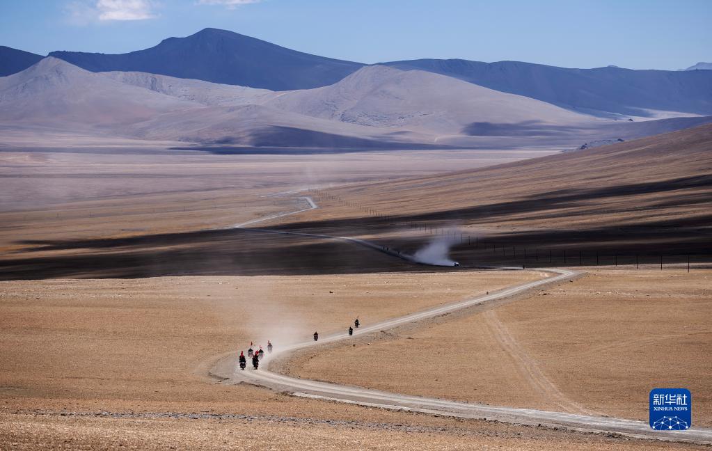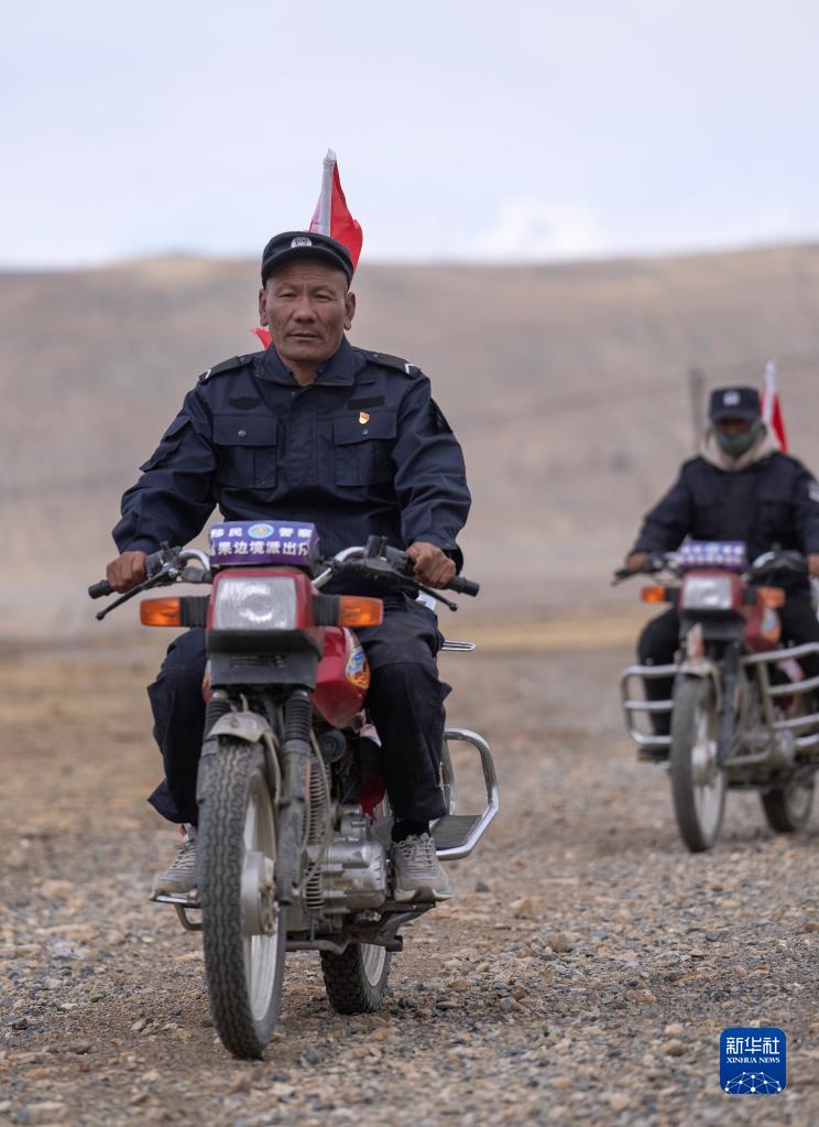 車輪滾滾,黃沙漫漫,一隊(duì)摩托車風(fēng)馳電掣般駛來……這里是平均海拔超過5000米的西藏日喀則市薩嘎縣昌果鄉(xiāng),雖然已是初夏時(shí)節(jié),但依然寒風(fēng)刺骨。50歲的昌果護(hù)邊聯(lián)防隊(duì)隊(duì)長石角帶領(lǐng)18名隊(duì)員,騎著摩托車在邊境線巡邏。