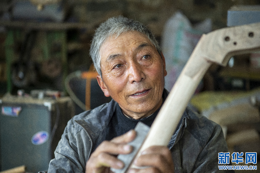 6月8日,娘嘎扎念琴制作技藝傳承人羅布次旦在制作扎念琴。新華網(wǎng) 旦增努布 攝