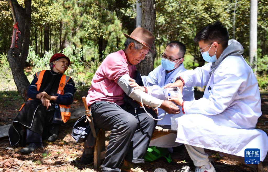 6月12日,王振疆(右)為吞不絨村89歲的村民娘姑進行檢查。新華社記者 費茂華 攝