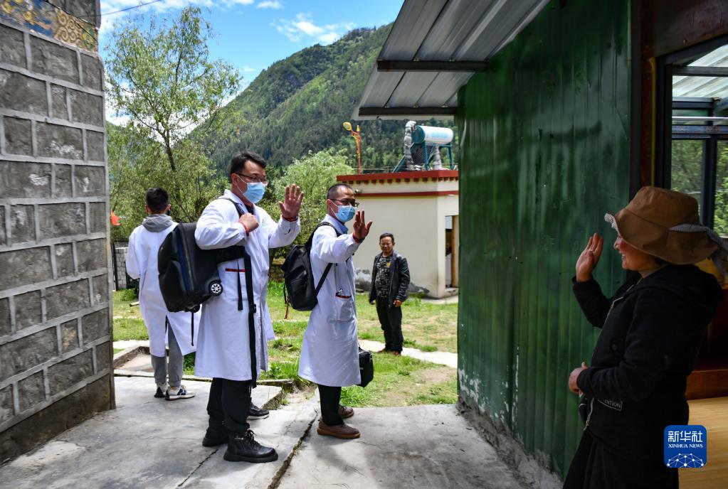 6月12日,阿珍感謝王振疆(右)和尼瑪益西(左)的診治。新華社記者 晉美多吉 攝