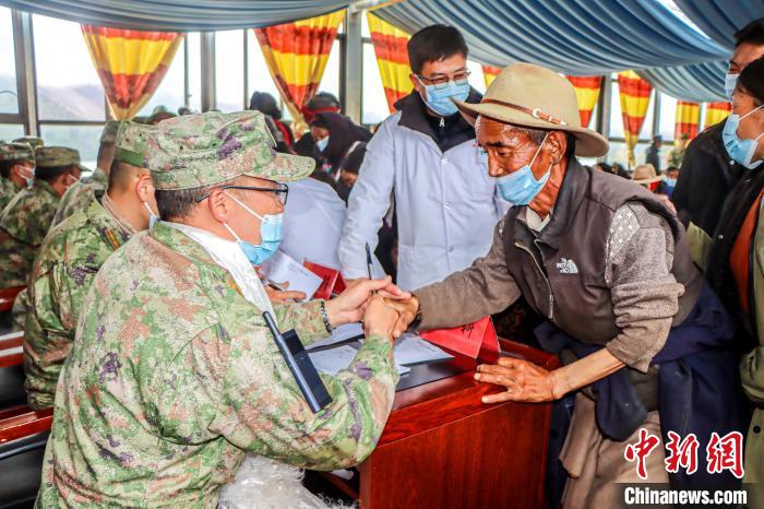 “多年的疾病,今天終于接受了一次系統(tǒng)的檢查和治療,感謝‘金珠瑪米門巴’(解放軍醫(yī)生)?!贝迕裎骼@為外科醫(yī)生王勝獻(xiàn)上潔白的哈達(dá),表達(dá)她的感恩之心,并緊握醫(yī)生的手久久不愿放開。
