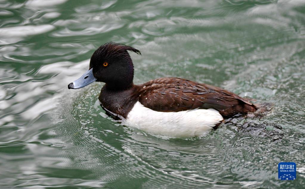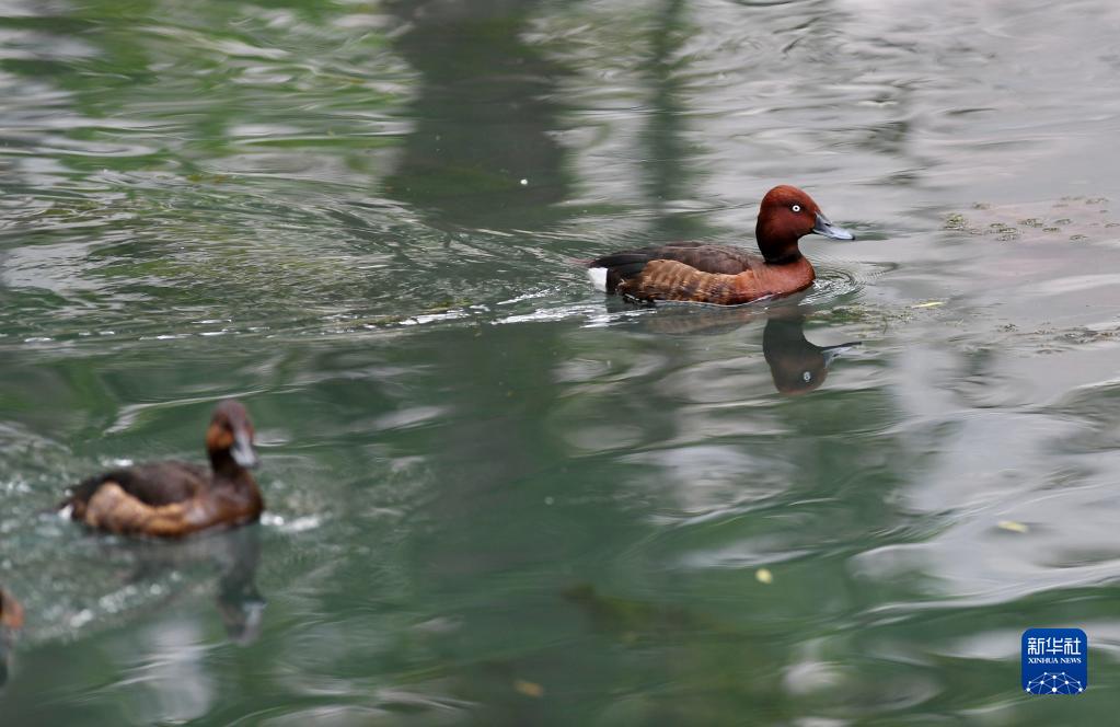 夏日里,白眼潛鴨和鳳頭潛鴨在西藏拉薩市拉魯濕地國家級自然保護區(qū)中干渠里覓食、嬉戲。