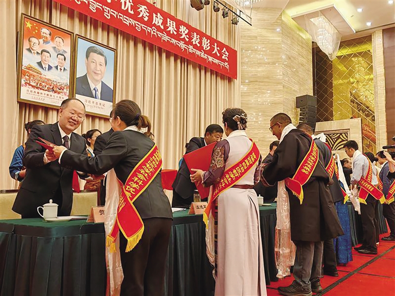 據(jù)了解,此次獲獎成果涉及到經(jīng)濟、政治、文化、教育、民生、民族、宗教、社會等各方面,反映了西藏哲學(xué)社會科學(xué)研究的系統(tǒng)性、結(jié)構(gòu)性和完備性的特點,推動了學(xué)科體系建設(shè)。此次獲獎成果涉及西藏傳統(tǒng)文化很多方面的研究,這些成果結(jié)合文獻史料、考古發(fā)現(xiàn)、文化習(xí)俗和物質(zhì)存留等多方例證,生動闡釋了中華文明“五個突出特性”在西藏優(yōu)秀傳統(tǒng)文化中的具體體現(xiàn),充分展現(xiàn)了西藏作為中華民族特色文化保護地的生動魅力,達到了用學(xué)術(shù)講好中國西藏故事的目的,在國內(nèi)外藏學(xué)界有一定的影響力,推動了話語體系建設(shè)。