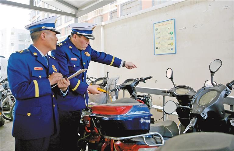 圖為消防指戰(zhàn)員深入小區(qū)檢查有無(wú)電動(dòng)車違規(guī)充電現(xiàn)象。