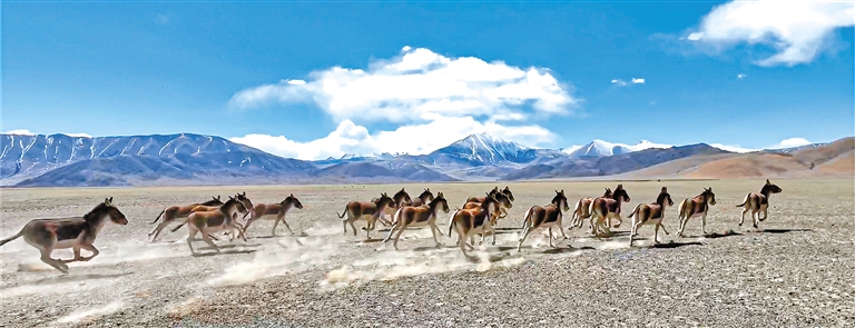 圖為在羌塘國家級自然保護(hù)區(qū)內(nèi)奔跑的藏野驢。邊巴多吉 攝