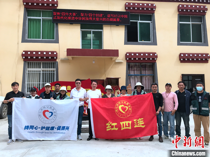 圖為7月10日,醫(yī)療專家在邊壩縣尼木鄉(xiāng)義診結(jié)束后,與當(dāng)?shù)毓ぷ魅藛T合影。 中新社記者 陳建新 攝
