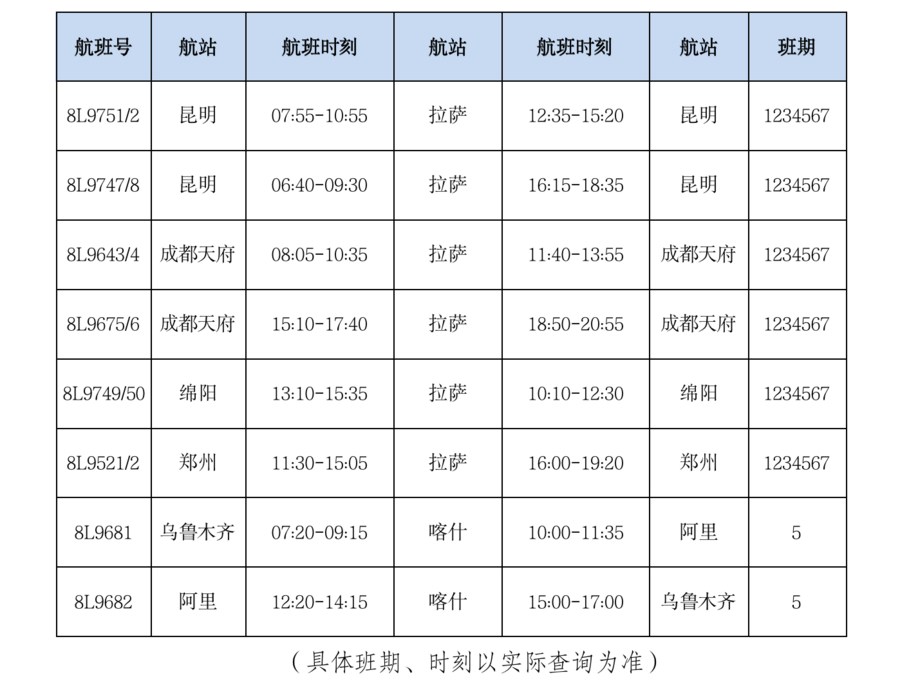 據(jù)了解,祥鵬航空“阿里—喀什—烏魯木齊”獨(dú)飛航線于6月23日復(fù)航,每周五執(zhí)飛一班;“拉薩—成都天府”航線于7月1日起升級(jí)為空客A330寬體機(jī)執(zhí)飛。