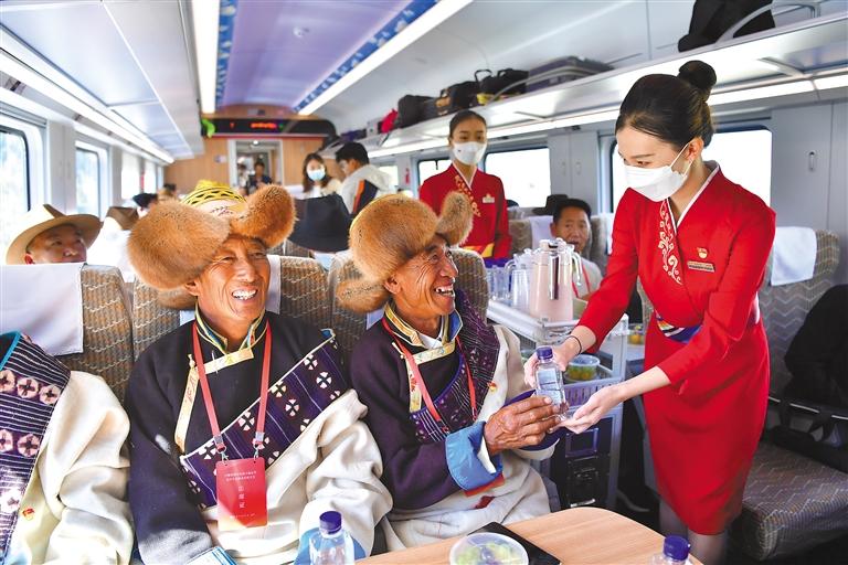 拉林鐵路林芝站黨委書記韓春旺說:“兩年來,林芝站認(rèn)真貫徹落實(shí)習(xí)近平總書記的重要指示要求,通過提供安全舒適的出行體驗(yàn)、全面周到的服務(wù),切實(shí)滿足人民群眾對美好生活的向往?!?/p>