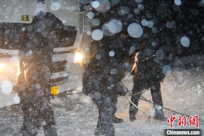 來(lái)到現(xiàn)場(chǎng)后楊軍發(fā)現(xiàn),該路段積雪超過(guò)半米深,車輛已經(jīng)深陷其中無(wú)法行駛。楊軍立即組織民警用鐵鍬鏟雪、人力助推、繩索牽引等進(jìn)行施救,經(jīng)過(guò)一個(gè)多小時(shí)的努力,成功將部分被困車輛救出??涩F(xiàn)場(chǎng)風(fēng)雪突然變大,下雪速度遠(yuǎn)超過(guò)救援速度,轉(zhuǎn)眼間,路面積雪接近1米高,到深夜時(shí),雙向車道上被困車輛、人員已達(dá)17輛、49人,看到情況越來(lái)越嚴(yán)峻,楊軍迅速對(duì)接、協(xié)調(diào)駐地交通部隊(duì)共同開(kāi)展救援。