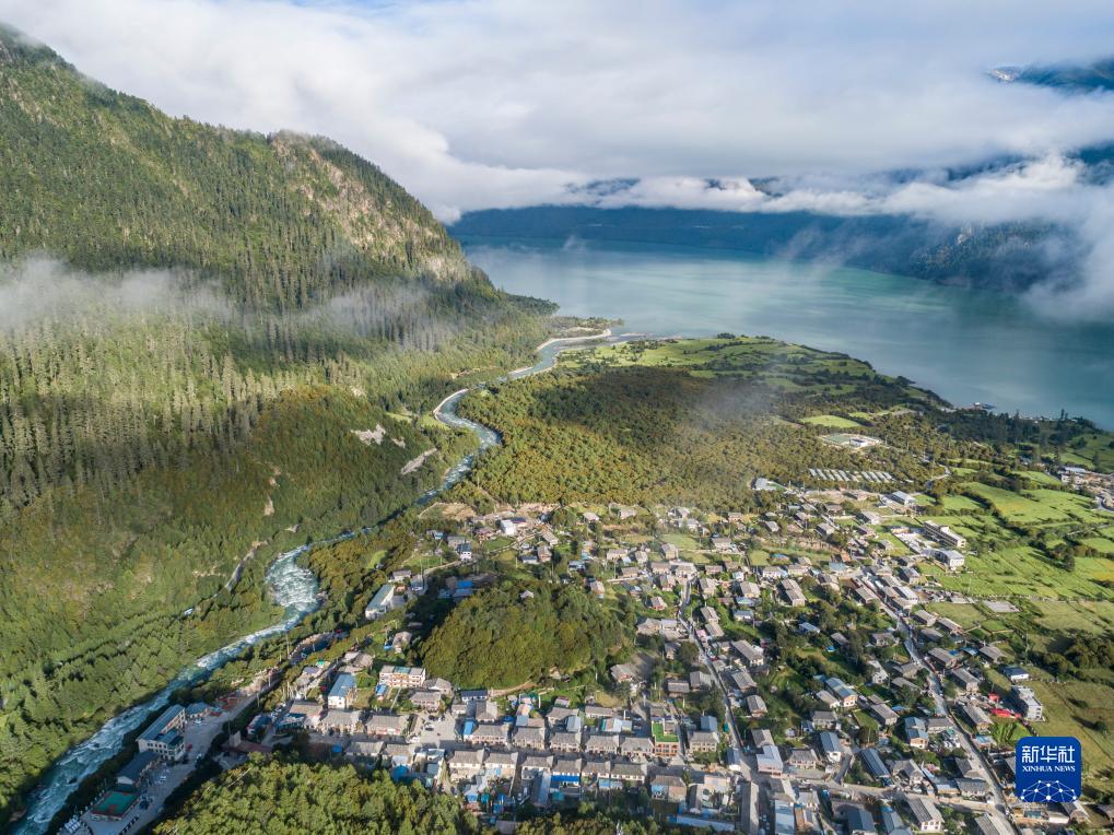 這是7月20日拍攝的西藏林芝市工布江達縣錯高鄉(xiāng)結巴村景色(無人機照片)。新華社記者 孫非 攝