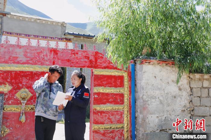 圖為索朗曲珍為鄰居解答戶籍辦理的相關(guān)政策。 應(yīng)俊 攝