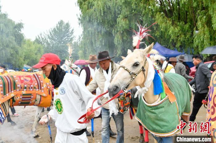 圖為“望果節(jié)”茶巴朗村村民準(zhǔn)備賽馬。貢嘎來(lái)松 攝