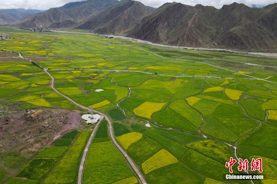7月24日,航拍西藏堆龍曲沿岸的油菜花田與青稞地。堆龍曲是拉薩河支流,源頭位于念青唐古拉山脈西南,流經羊八井、德慶鎮(zhèn),至堆龍德慶區(qū)注入拉薩河干流。近日,西藏堆龍曲兩岸油菜花盛放,呈現(xiàn)出一幅“高原不與四時同、七月才開二月花”的美麗景象。駕車經過或漫步其間,高原油菜花散發(fā)出陣陣花香,像是“春天的味道”。