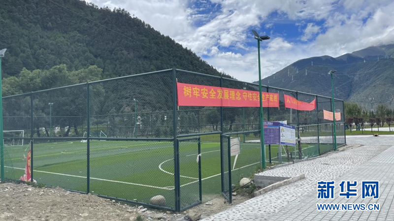 圖為才召村新修的五人制足球場,供村里的孩子們踢足球。新華網(wǎng) 陳穎 攝