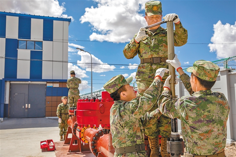 西藏軍區(qū)保障部某管線大隊常態(tài)巡護千里輸油管線,為西藏穩(wěn)定發(fā)展作出卓越貢獻。 胡強 石建 劉雪峰 攝