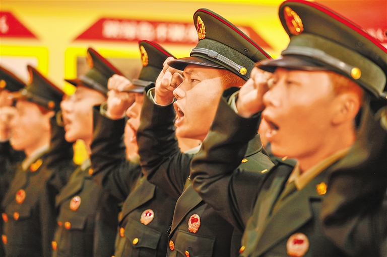 西藏軍區(qū)保障部某管線大隊組織新兵重溫入伍誓詞,激勵大家不忘初心、建功軍營。胡強 石建 劉雪峰 攝