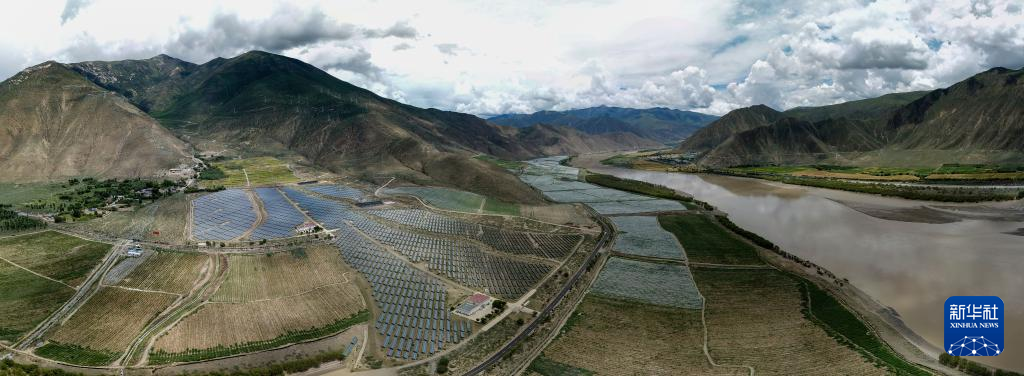 鳥(niǎo)瞰桑日縣高海拔葡萄種植基地(無(wú)人機(jī)照片,7月26日攝)。新華社記者 姜帆 攝