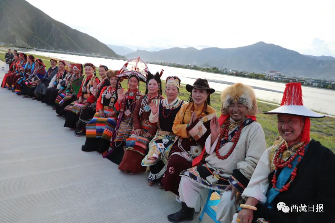 圖為2023年拉薩雪頓節(jié)開幕式分會(huì)場(chǎng)上,《藏裝秀》的表演者。記者 格桑倫珠 攝