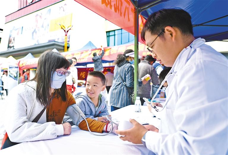 圖為活動現(xiàn)場,醫(yī)生在為市民測量血壓。 西藏日報記者 王敏 攝