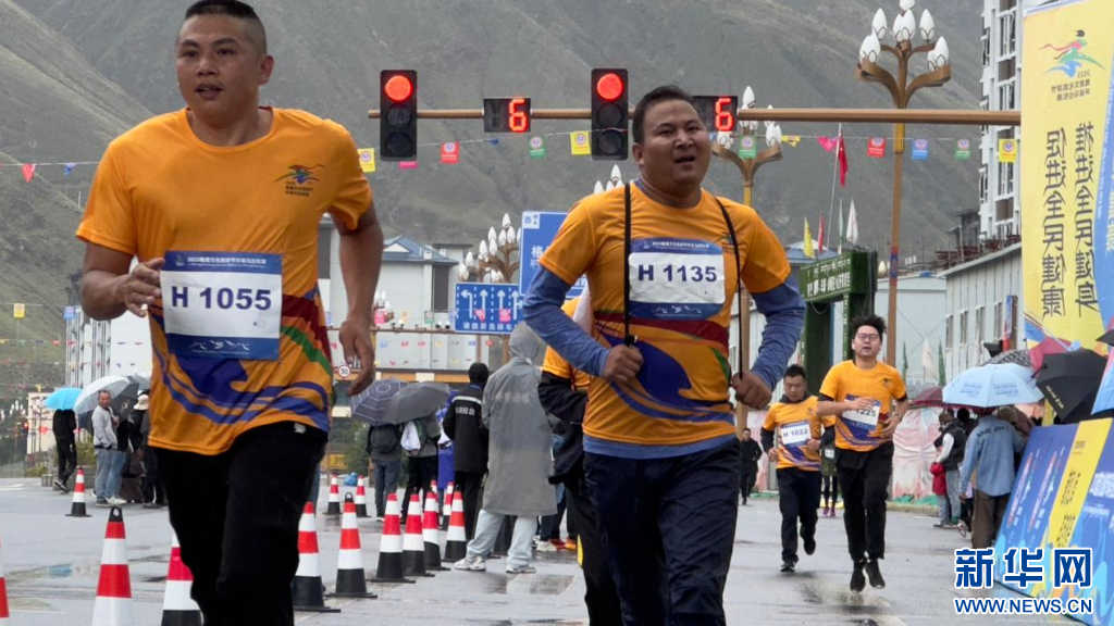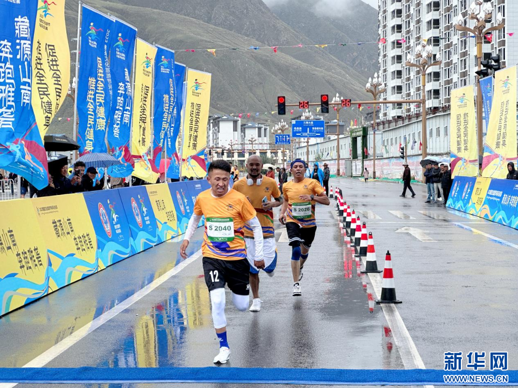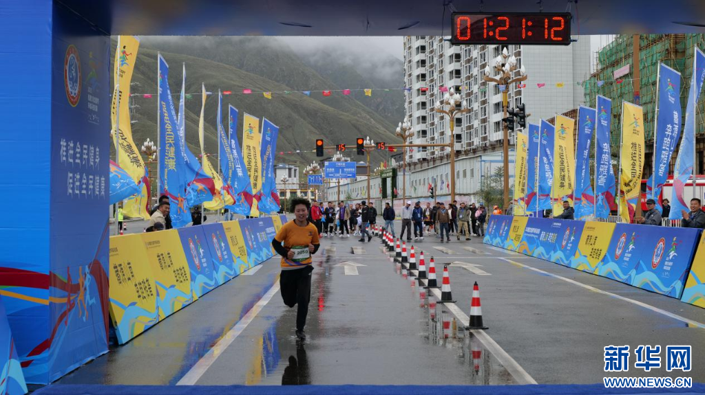 圖為2023雅礱文化旅游節(jié)環(huán)城馬拉松賽選手到達(dá)終點(diǎn)(8月26日攝)。新華網(wǎng) 柑丹鴦琦 攝