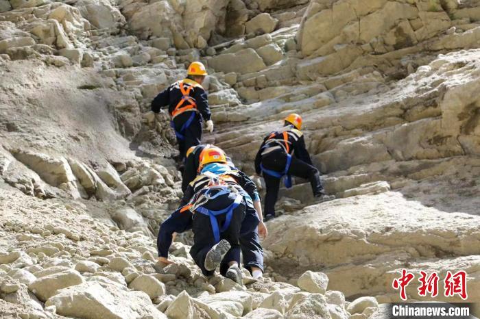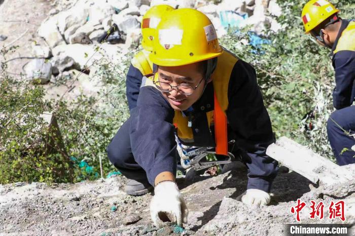 近日,在西藏山南雅魯藏布江畔的拉林鐵路安拉隧道口山崖上,中國(guó)鐵路青藏集團(tuán)有限公司拉薩基礎(chǔ)設(shè)施段加查橋隧工區(qū)的職工們對(duì)山體開(kāi)展巡視,他們一邊攀爬,一邊小心用手錘敲擊巖石,對(duì)有空虛、容易滑落的石塊用自噴漆進(jìn)行標(biāo)記。遠(yuǎn)遠(yuǎn)看去,一群人猶如壁虎穿梭于懸崖峭壁之上。