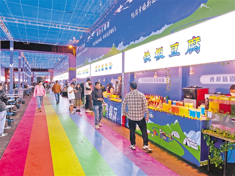 街頭流光溢彩,美食飄香;表演精彩紛呈,燃動拉薩。市民和游客在這場美食盛宴中共享美食、品味幸福。