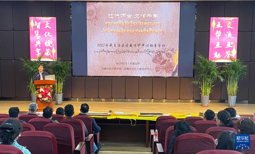 “江流萬(wàn)古 文潤(rùn)千年”——2023年西藏自治區(qū)古籍保護(hù)中心曬書活動(dòng)現(xiàn)場(chǎng)。新華社記者 春拉 攝
