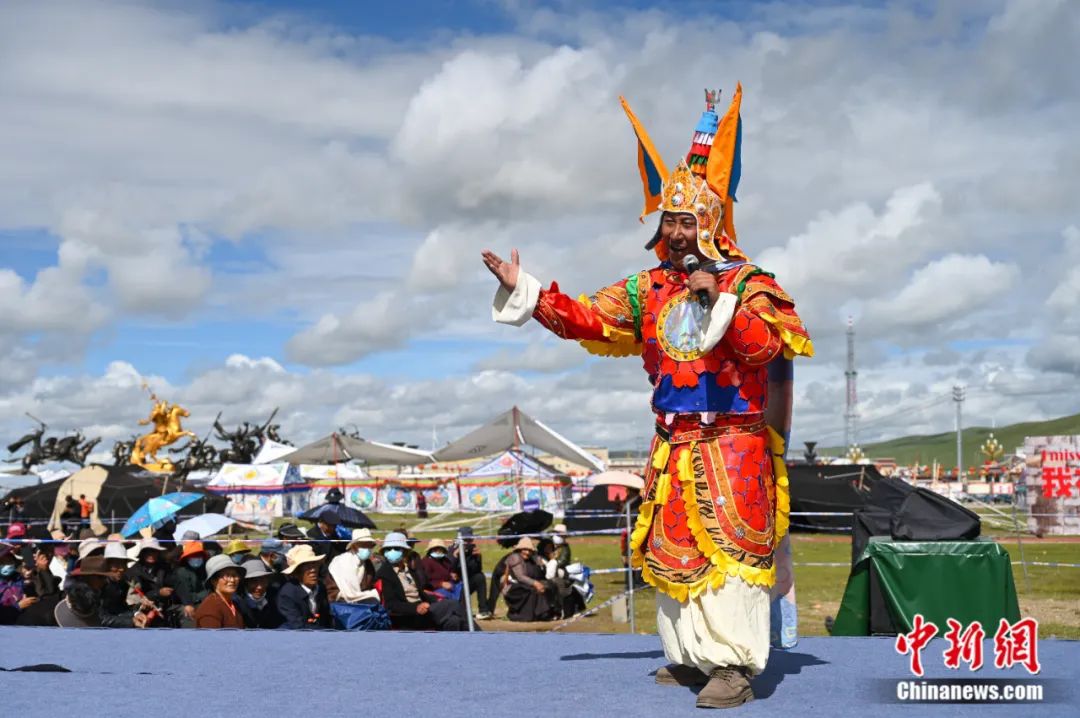 2023年8月9日,那曲賽馬節(jié)上,格薩爾說唱藝人登臺演出。趙朗 攝