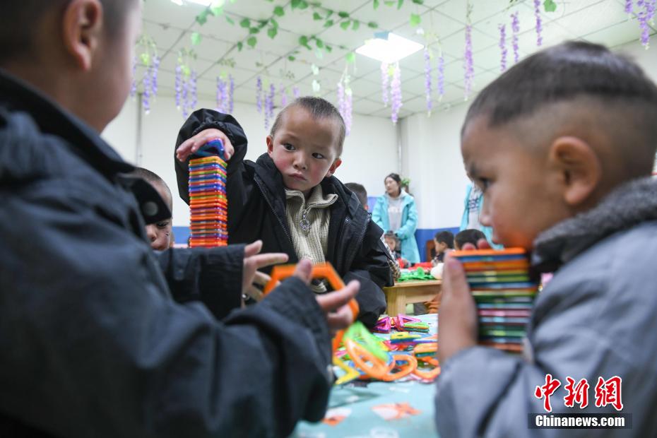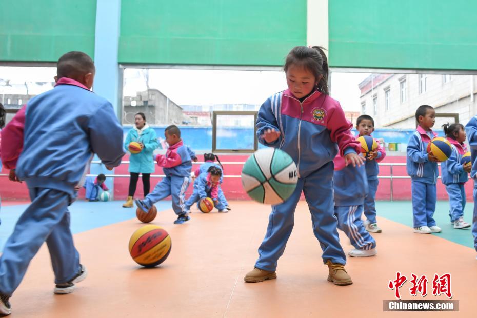 圖為那曲市第三幼兒園的學(xué)生正在游戲。貢嘎來松 攝