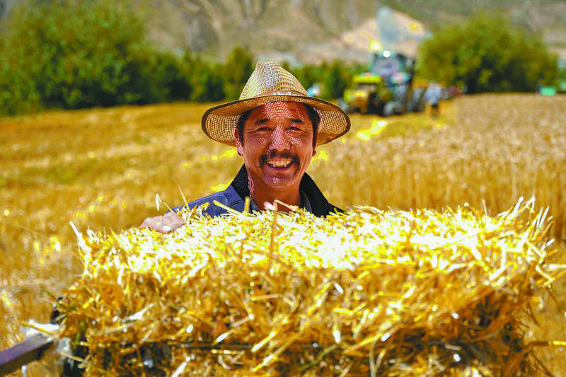 村民臉上露出豐收的喜悅。記者 阿旺尼瑪 攝