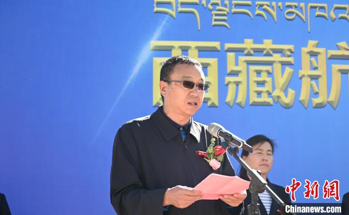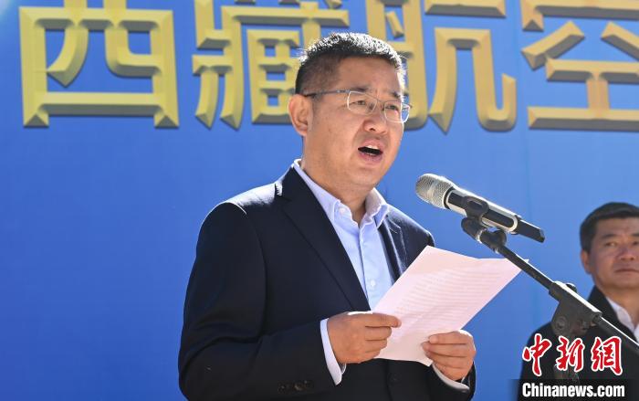 圖為西藏航空副總經(jīng)理張紅軍致辭。趙朗 攝