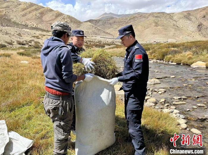 20日,在西藏阿里地區(qū)札達縣曲松鄉(xiāng)草場上,一眼望去處處是忙碌的身影,曲松邊境派出所移民管理警察和轄區(qū)民眾齊心協(xié)力,為儲存牲畜越冬度春飼草料辛勤勞作。