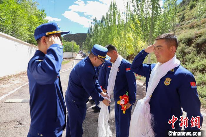 9月23日,參賽隊員載譽歸來,昌都市森林消防支隊熱烈歡迎參加比武指戰(zhàn)員載譽凱旋。“敬禮!”支隊指戰(zhàn)員用鮮花、哈達和熱烈的掌聲迎接凱旋歸來的勇士。