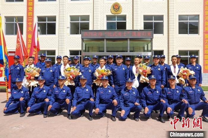 昌都森林消防支隊迎接載譽歸來的隊員。張強 攝