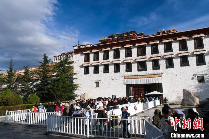 圖為9月30日上午,游客排隊進(jìn)入布達(dá)拉宮參觀。江飛波 攝