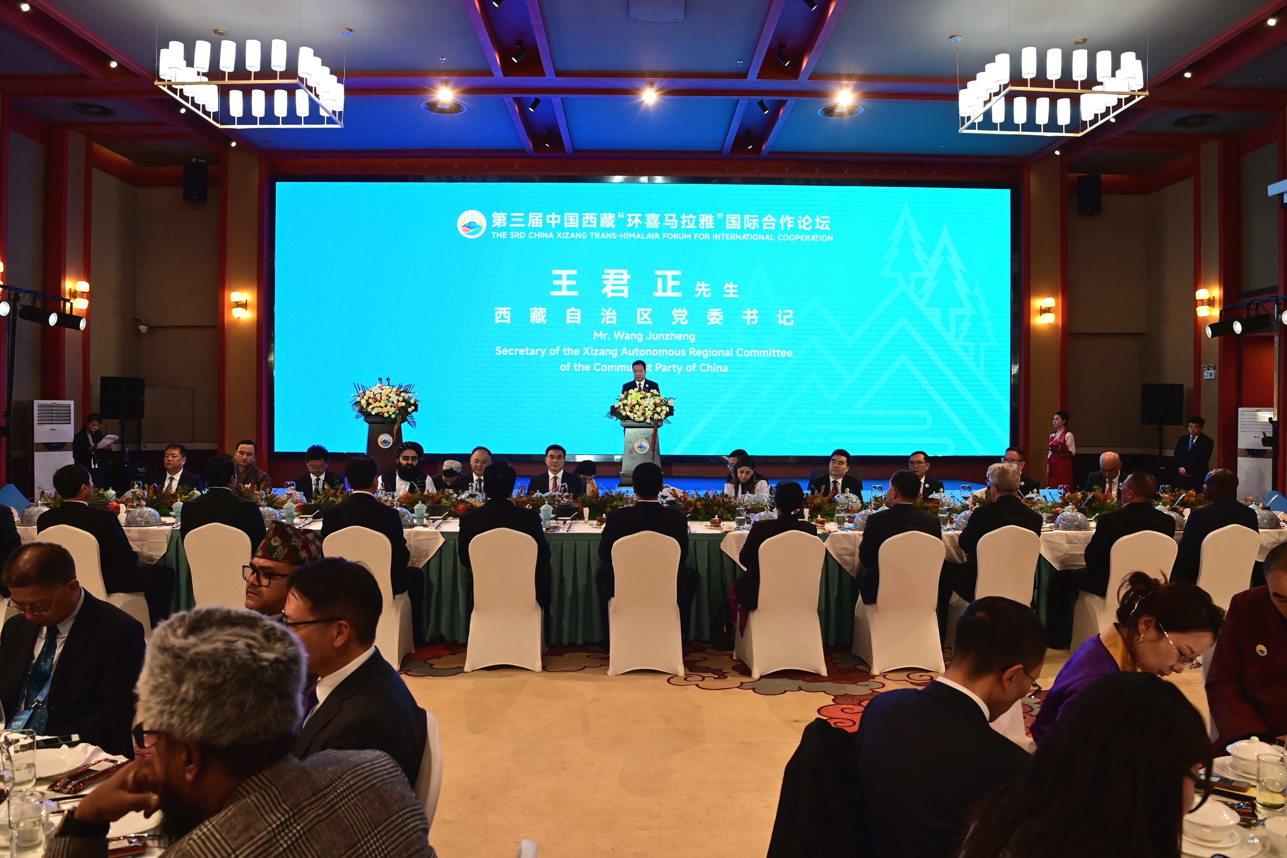 王君正代表自治區(qū)黨委、政府和全區(qū)各族人民,向出席中國西藏“環(huán)喜馬拉雅”國際合作論壇的中央和國家機關(guān)部委領(lǐng)導(dǎo)、各國政要、專家學(xué)者表示熱烈歡迎,向大家長期以來對西藏經(jīng)濟(jì)社會各項事業(yè)發(fā)展的支持表示衷心感謝。