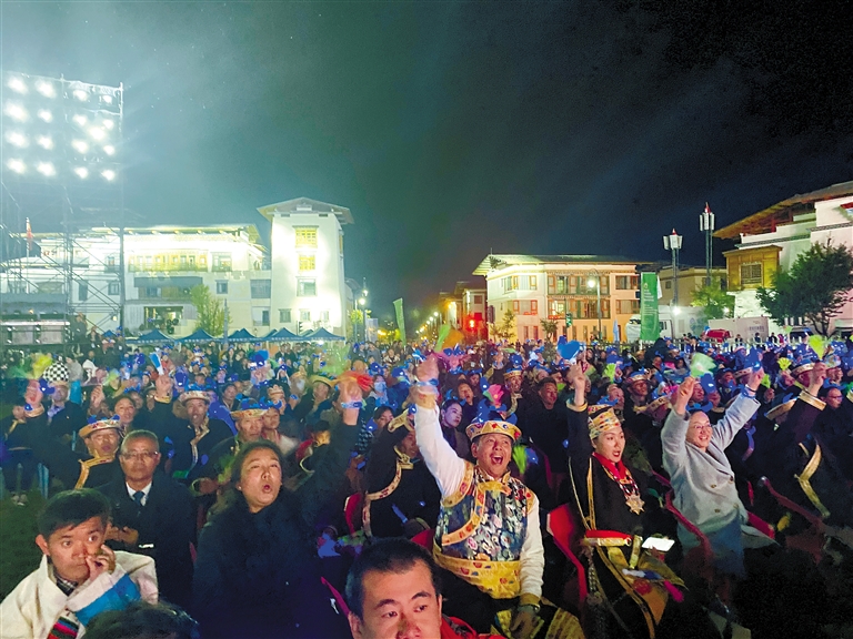 觀眾觀看第三屆中國(guó)西藏“環(huán)喜馬拉雅”國(guó)際合作論壇文藝演出。記者 洛桑 攝