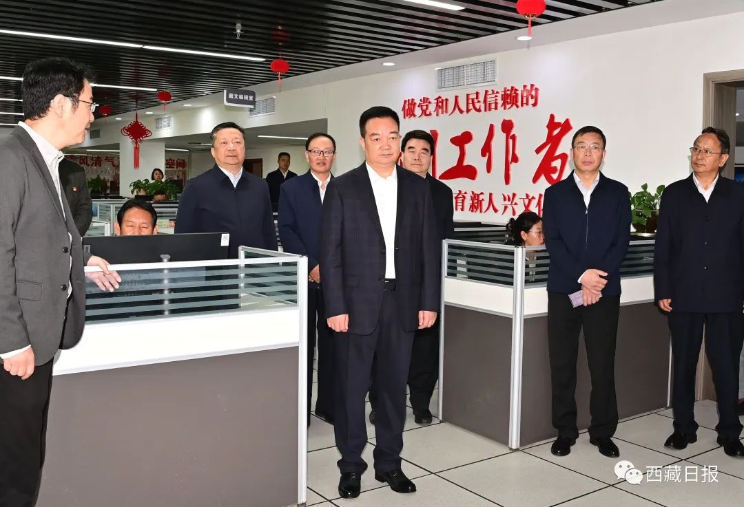 2023年9月25日,自治區(qū)黨委書記王君正來到西藏日報(bào)社、西藏廣播電視臺(tái)調(diào)研。這是王君正在西藏日報(bào)社詳細(xì)了解市場化運(yùn)營、全媒體傳播體系建設(shè)、媒體深度融合發(fā)展等情況。記者 旦增西旦 攝
