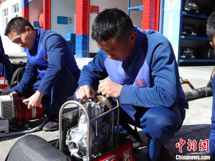 圖為指戰(zhàn)員保養(yǎng)滅火裝備。吳蕾蕾攝