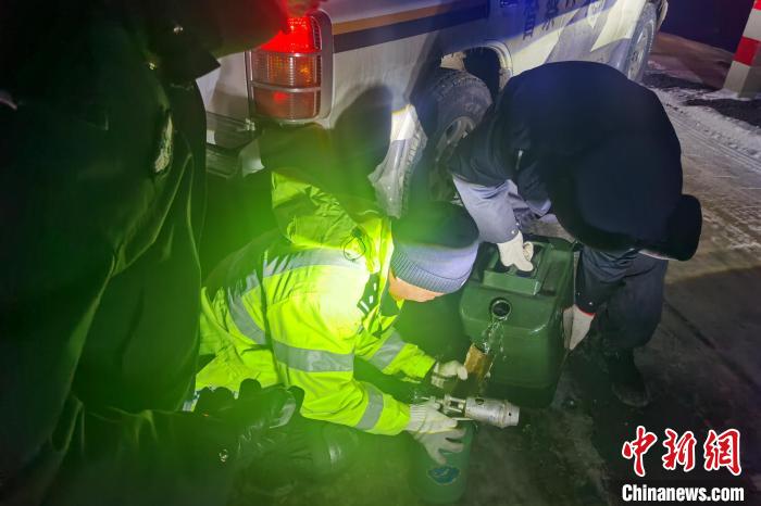 唐古拉山埡口路段入夜后氣溫極低,圖為降雪后安多警方對被困人員和車輛進(jìn)行施救。安多縣公安局 供圖