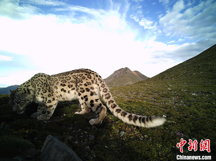 圖為7月16日,西藏拉薩市堆龍德慶區(qū)“乃朗谷雪豹重要棲息地”內(nèi)紅外線相機(jī)拍攝到的雪豹。 中新社發(fā) 山水自然保護(hù)中心 供圖