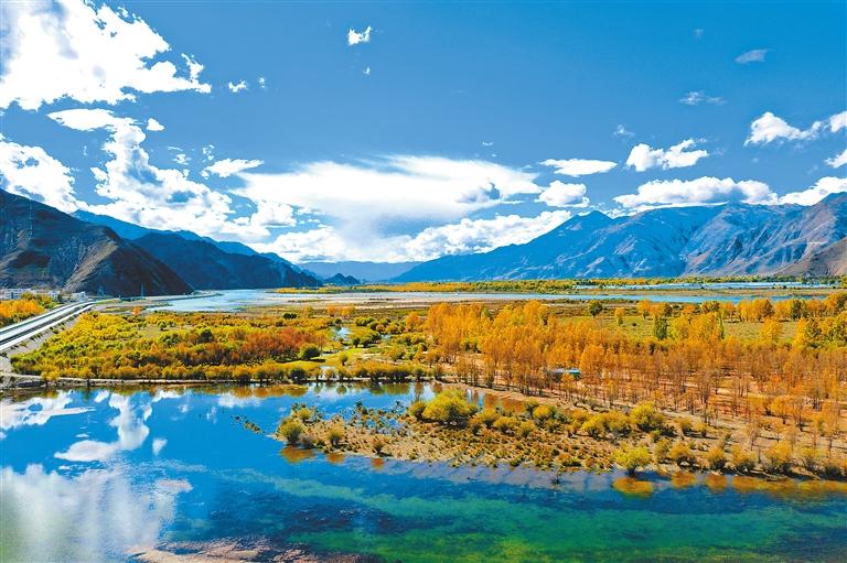 達(dá)孜區(qū),位于拉薩市中南部,素以壯美的秋景而聞名。10月的達(dá)孜,秋意濃厚,遠(yuǎn)處的群山,層林盡染,層次分明的顏色構(gòu)成了一幅絢爛的畫卷。