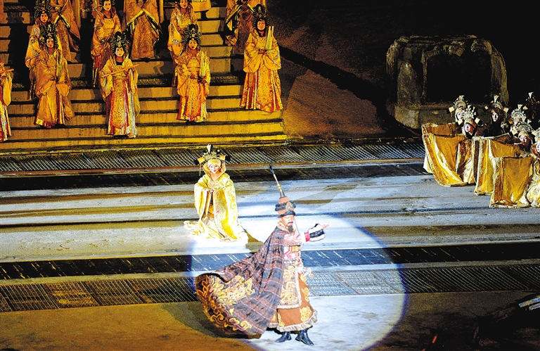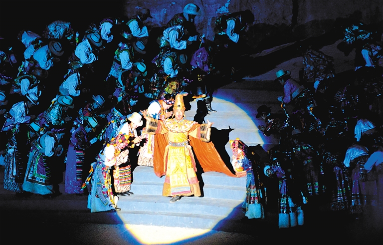 圖為大型實景史詩劇《文成公主》演出現(xiàn)場。 記者 次仁平措 唐斌 攝