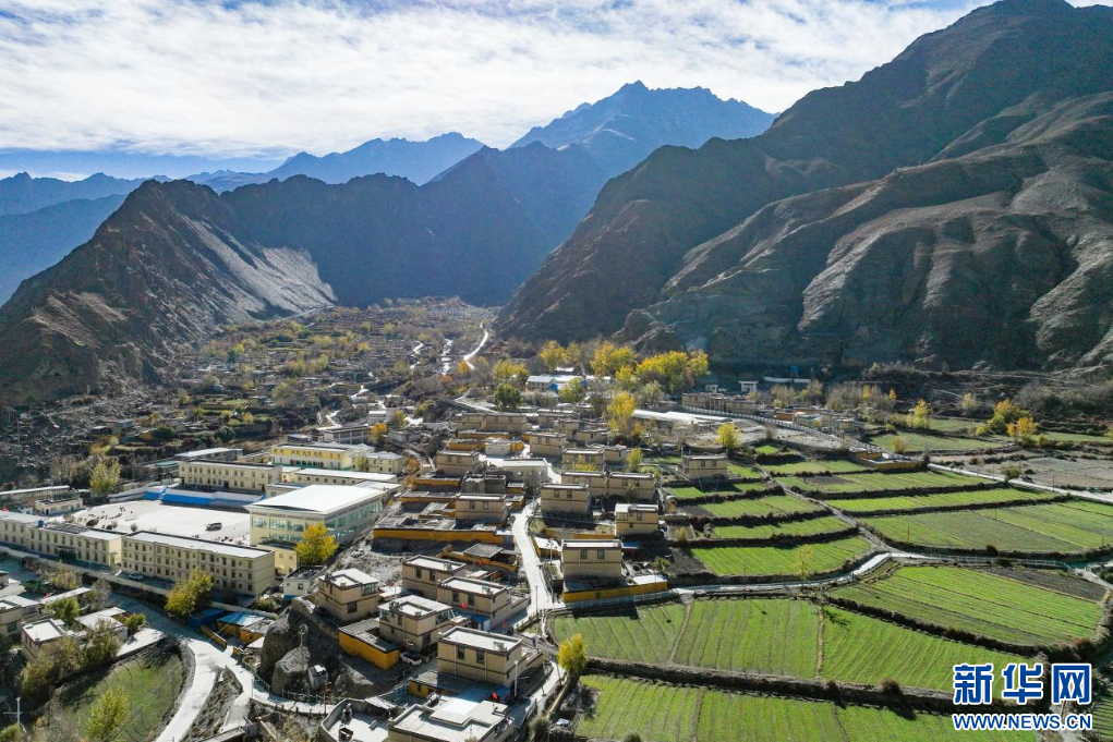11月16日,西藏隆子縣加玉鄉(xiāng)境內(nèi)拍攝的村莊與農(nóng)田(無人機(jī)照片)。新華網(wǎng) 柑丹鴦琦 攝